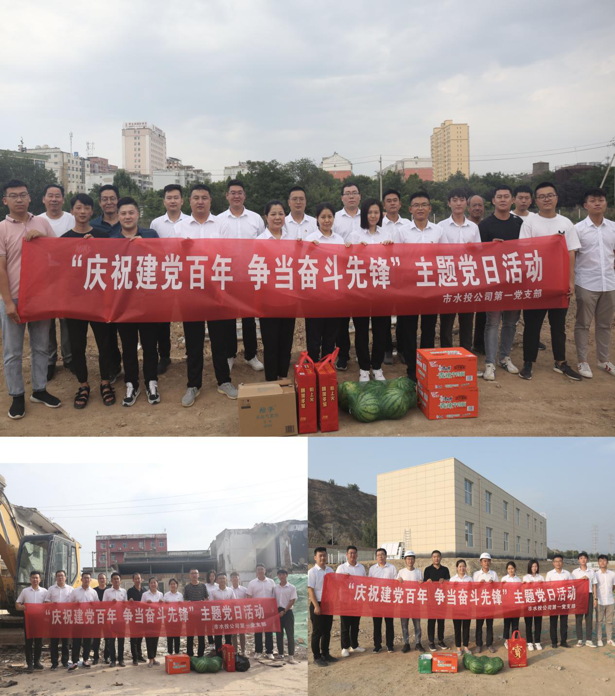 在建黨一百周年之際,為充分表達黨組織對一線黨員干部群眾頂酷暑、戰(zhàn)高溫,攻堅克難抓建設的工作干勁的鼓勵和肯定,對一線黨員干部群眾的生產生活提供一定的幫助,為他們送去組織的關心和關愛,在學習活動結束后,支部部分黨員、入黨積極分子共同來到干河綜合治理工程3標段項目工地、姚暹渠禹都段項目工地和鴨子池項目工地,詳細了解各段施工進度及存在的困難問題,現(xiàn)場溝通交流、積極出謀劃策,同時為各項目工地黨員干部群眾送上了西瓜、飲料、防蚊液、花露水等消暑品。