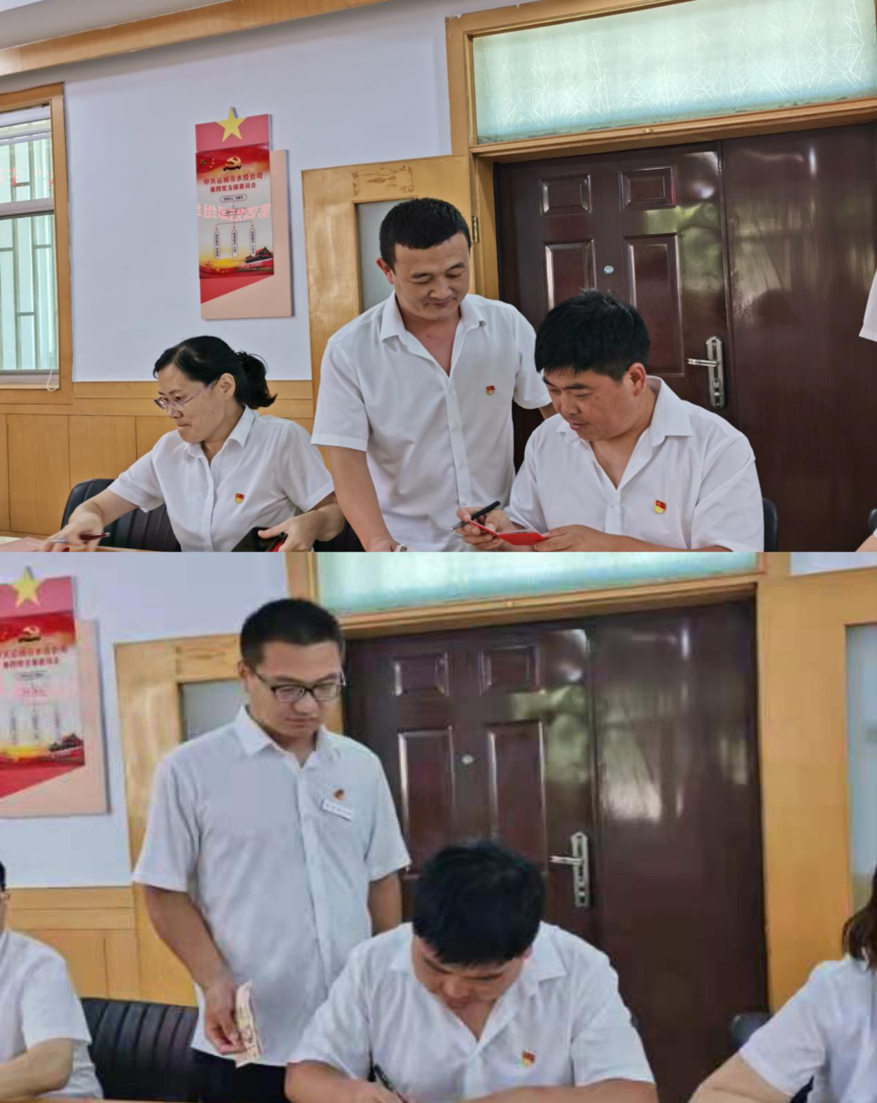 首先,全體黨員逐個向支部繳納了本月黨費(fèi),并進(jìn)行了黨費(fèi)收繳臺賬登記。