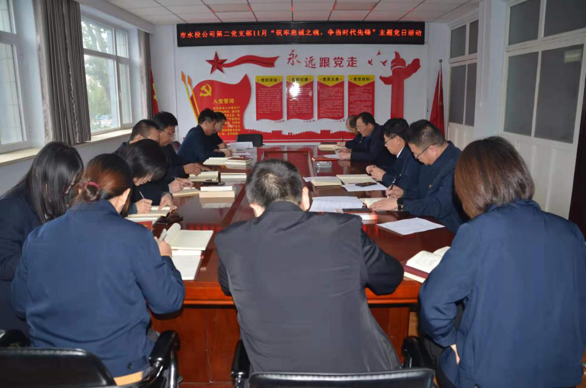 按照水投公司黨委統(tǒng)一部署要求,第二黨支部2021年11月1日下午組織全體黨員、積極分子、群眾代表開展了“筑牢忠誠之魂,爭當(dāng)時代先鋒”主題黨日活動,會議由支部書記吳爭兵主持。