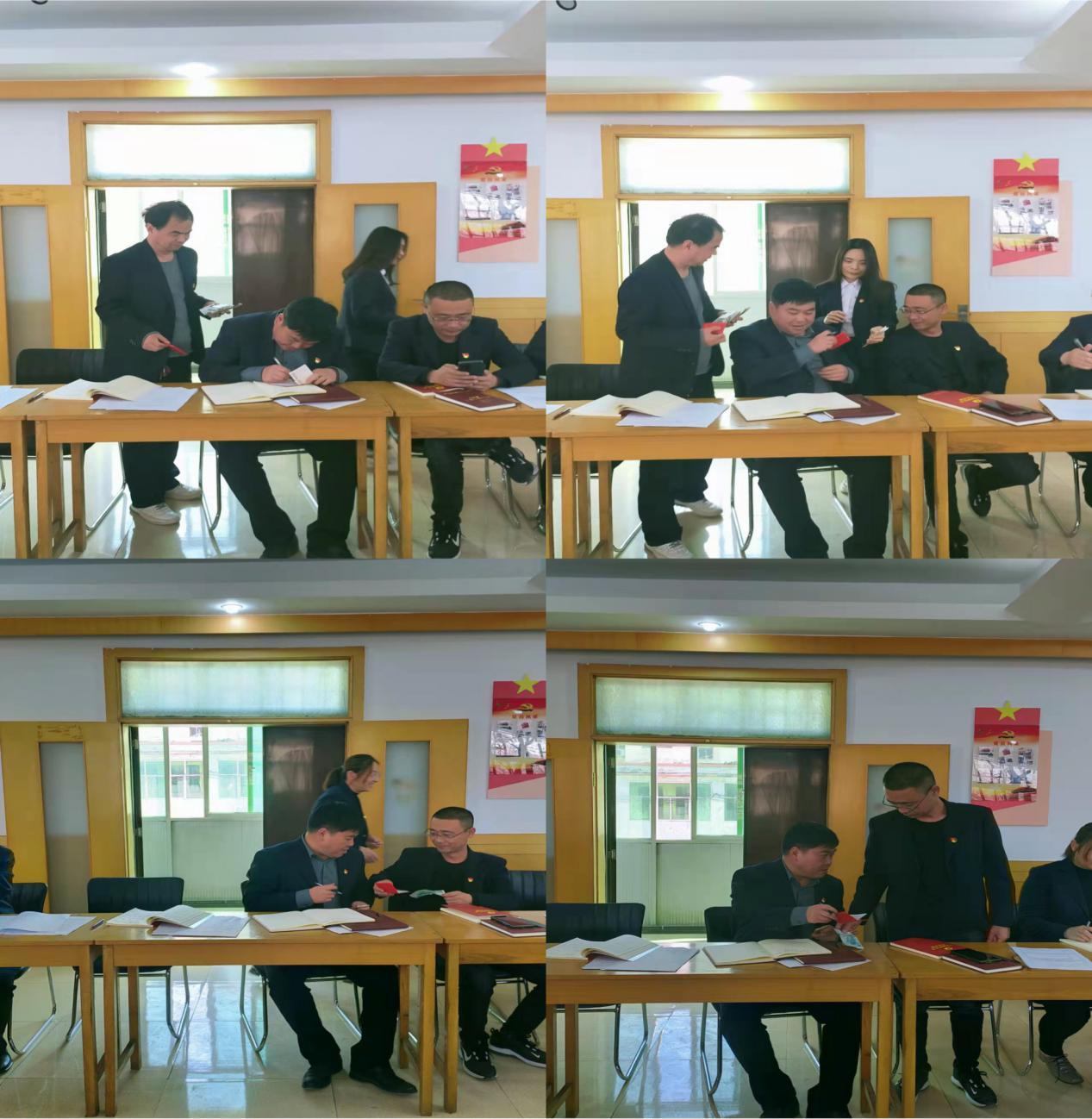 會前,全體黨員逐個向支部繳納了本月黨費,并進行了黨費收繳臺賬登記。