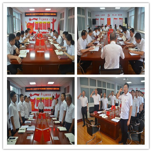 全體參會人員面向黨旗唱國歌,重溫入黨誓詞,齊誦《黨章》總綱9~11自然段。