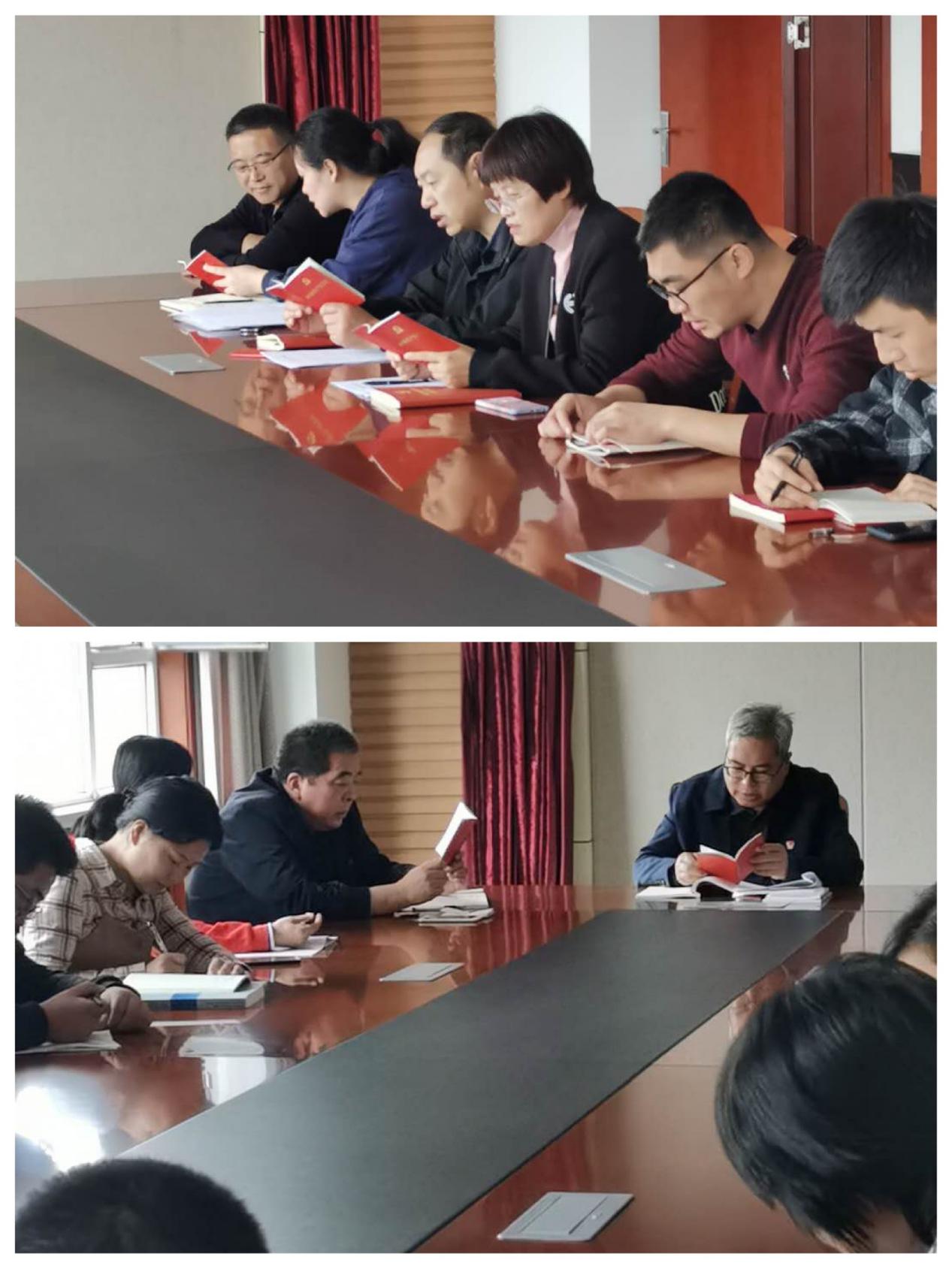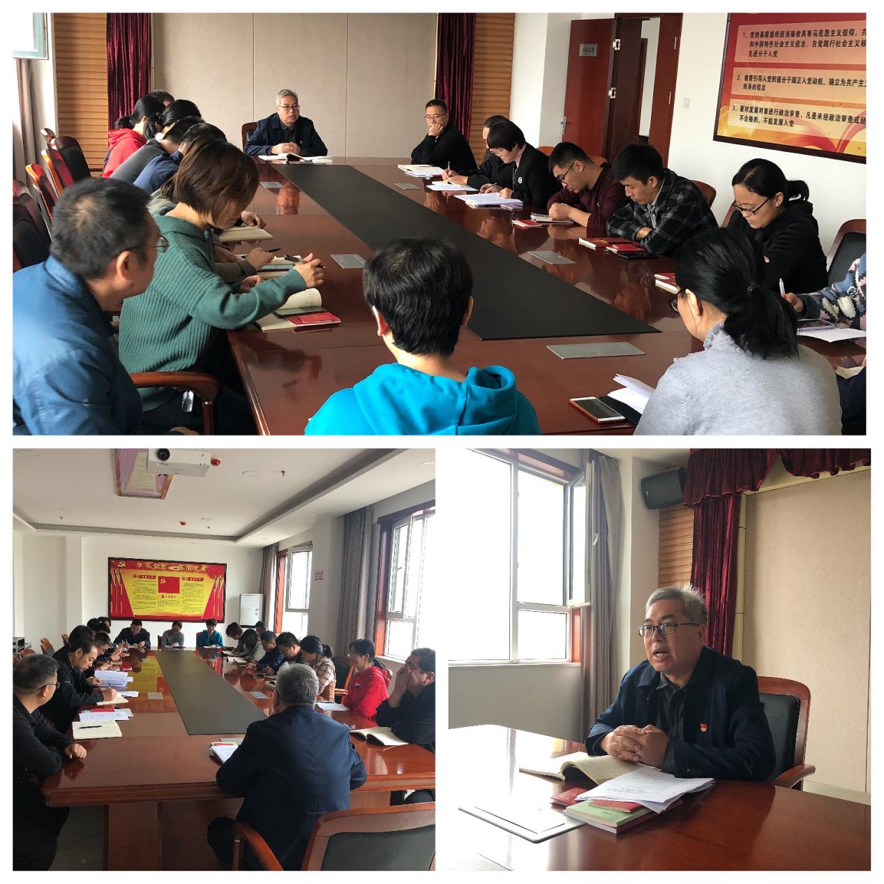 在集中學(xué)習(xí)習(xí)近平新時(shí)代中國特色社會(huì)主義思想環(huán)節(jié),郭紅爭同志向大家傳達(dá)學(xué)習(xí)近平總書記在紀(jì)念中國人民抗日戰(zhàn)爭暨世界反法西斯戰(zhàn)爭勝利75周年座談會(huì)和在全國抗擊新冠肺炎疫情表彰大會(huì)上的重要講話精神;王偉東同志帶領(lǐng)學(xué)習(xí)習(xí)近平總書記在科學(xué)家座談會(huì)、基層代表座談會(huì)和教育文化衛(wèi)生體育領(lǐng)域?qū)<掖碜剷?huì)上的重要講話精神;徐睿書記傳達(dá)學(xué)習(xí)中共中央辦公廳印發(fā)的《關(guān)于鞏固深化“不忘初心、牢記使命”主題教育成果的意見》和習(xí)近平總書記對(duì)做好“三農(nóng)”工作作出的重要指示精神。