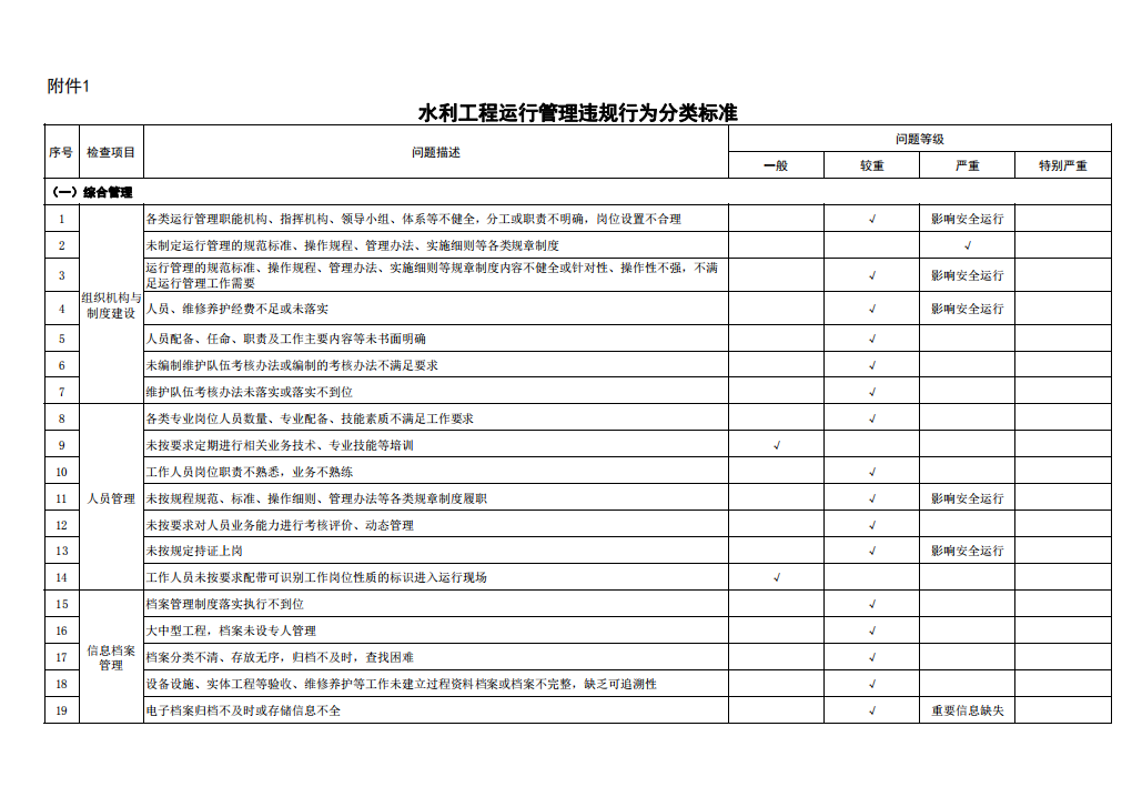附件:1.水利工程運(yùn)行管理違規(guī)行為分類標(biāo)準(zhǔn)