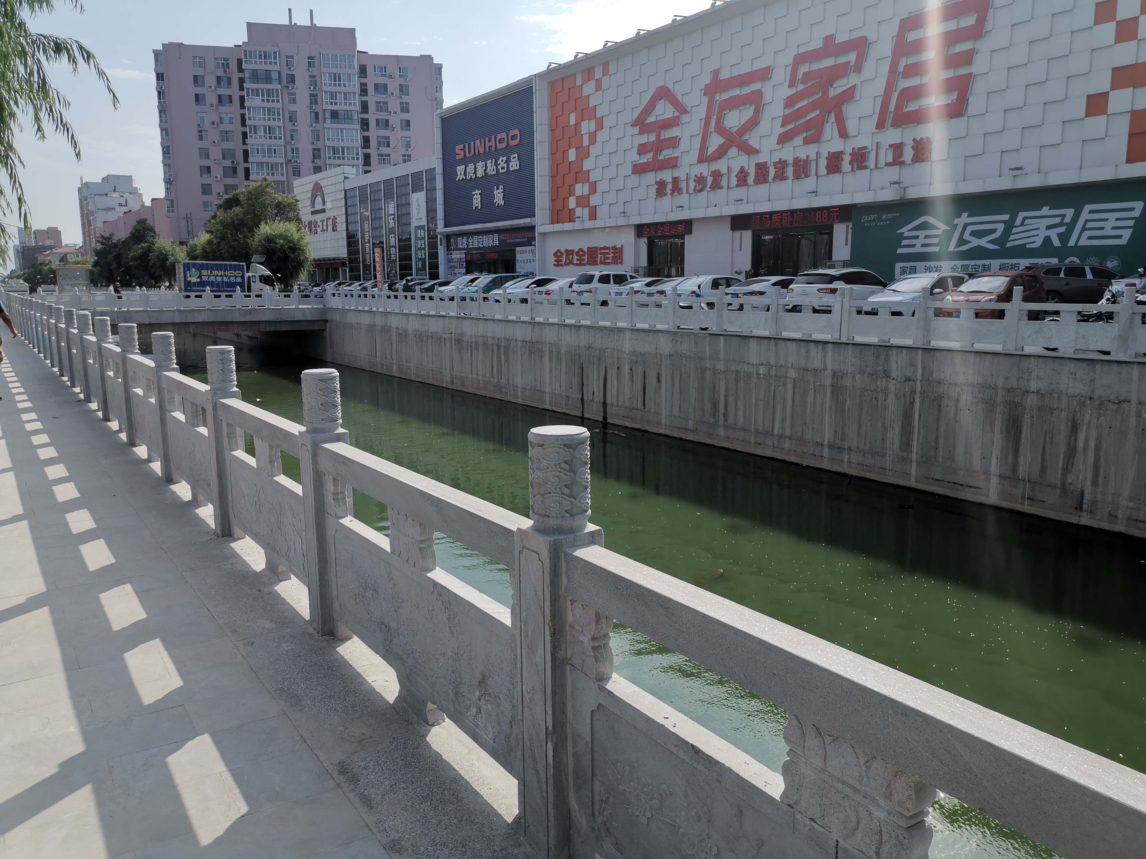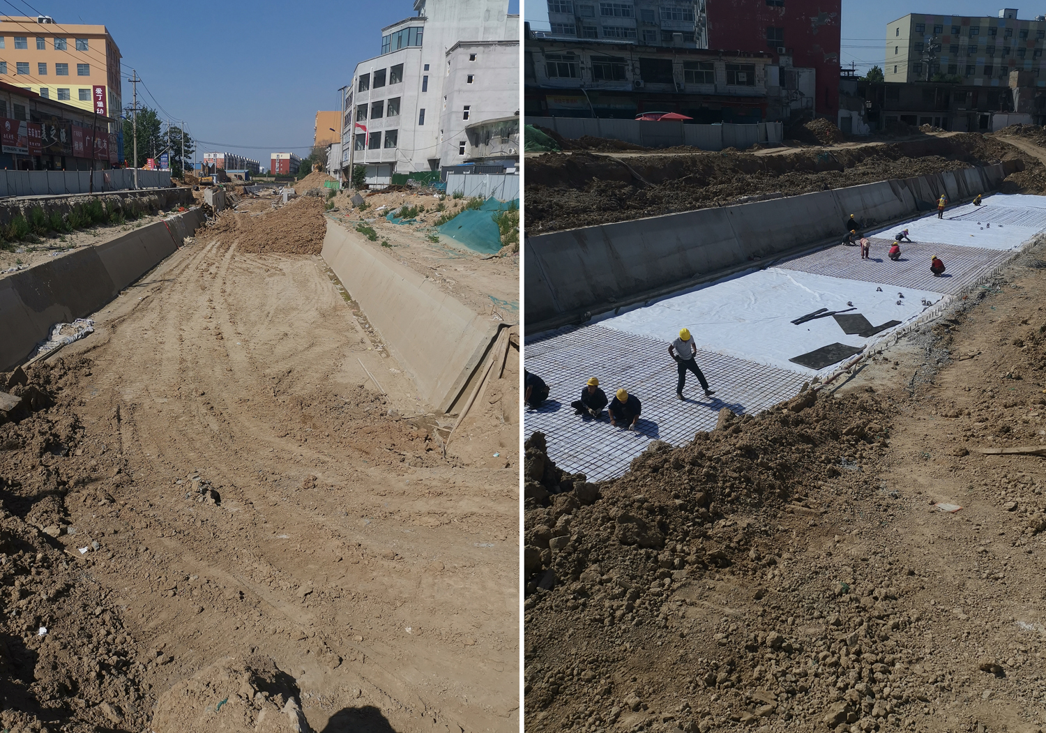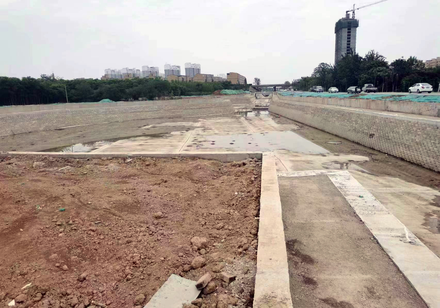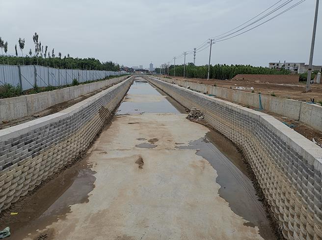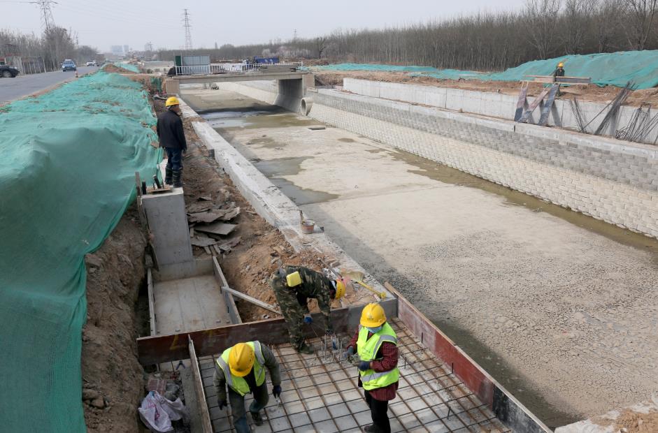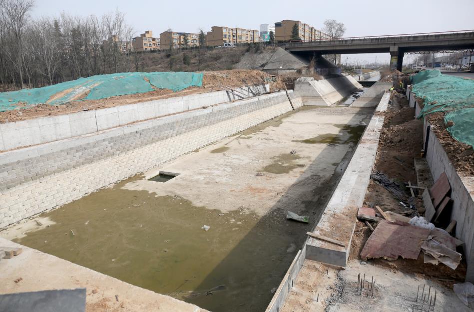工程批復(fù)總投資4.8億元,批復(fù)工程主要建設(shè)內(nèi)容:渠道疏浚5 km;新建和改造兩岸堤防10 km;新建平板橋14座,人行拱橋3座;新建和改造截污管線4.02km;新建景觀鋼壩閘3座;渠道兩側(cè)綠化8萬(wàn)m²;新建水循環(huán)泵站1座,埋設(shè)壓力管道4.8km。主要功能是泄洪、截污及景觀。2019年12月項(xiàng)目開工建設(shè),工期兩年。
