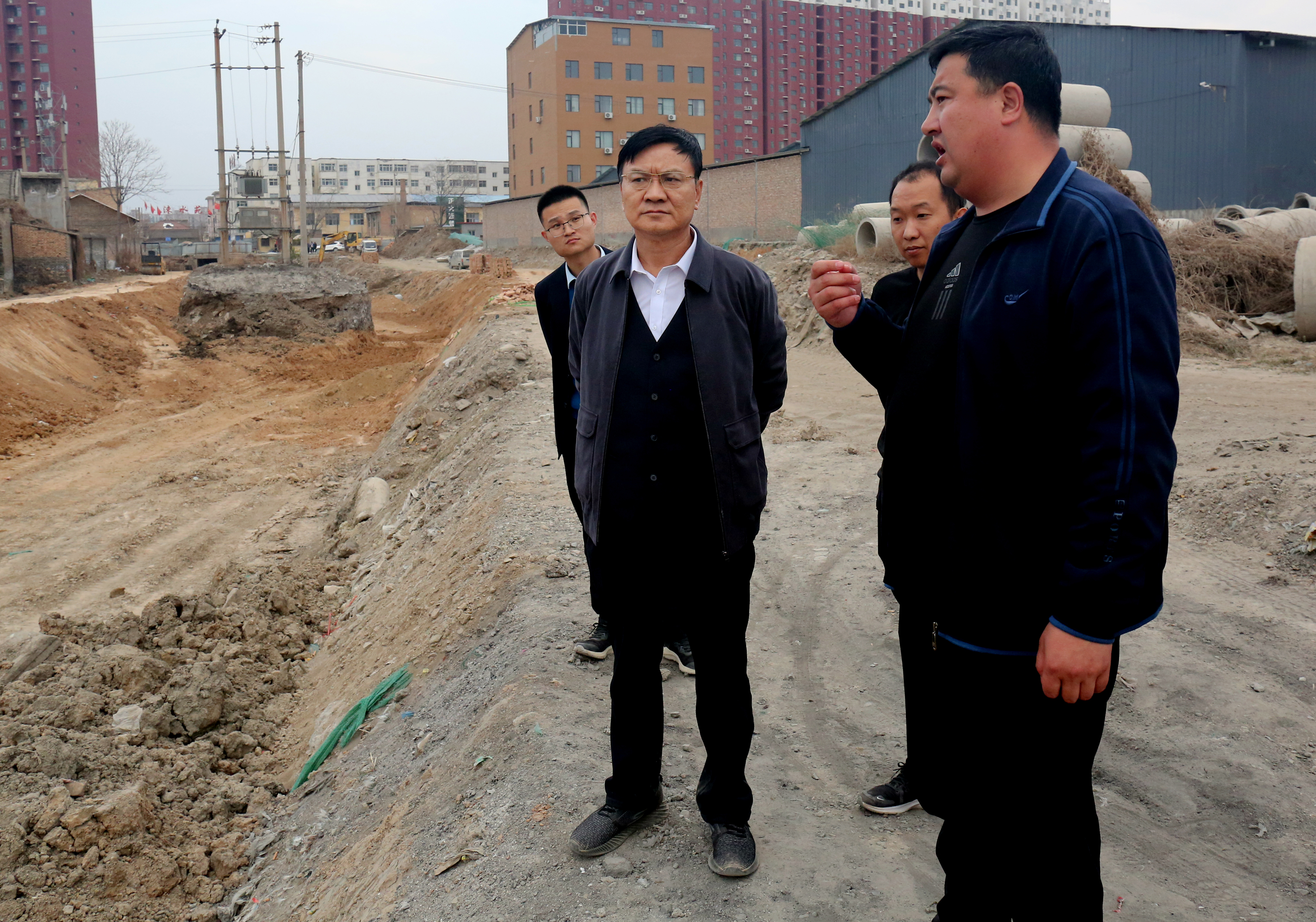 3月9日下午,公司董事長崔作銘赴干河綜合治理項目工地一線督察施工進度,確保工程項目如期完工。