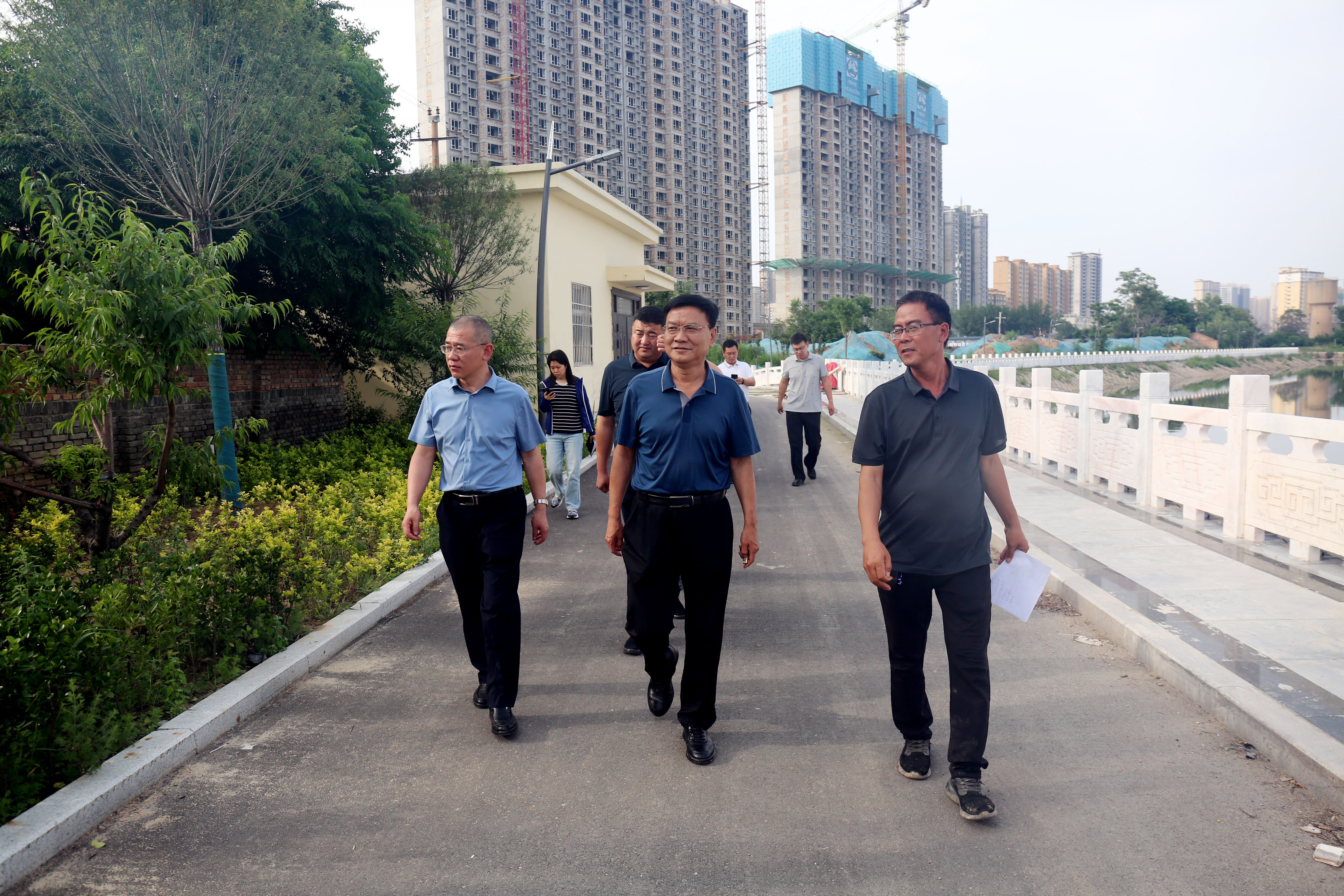 6月19日,公司董事長(zhǎng)崔作銘帶領(lǐng)相關(guān)業(yè)務(wù)部門(mén)赴干河綜合治理工程現(xiàn)場(chǎng)察看防汛備汛和水環(huán)境治理工作,公司副總經(jīng)理范永勝陪同。