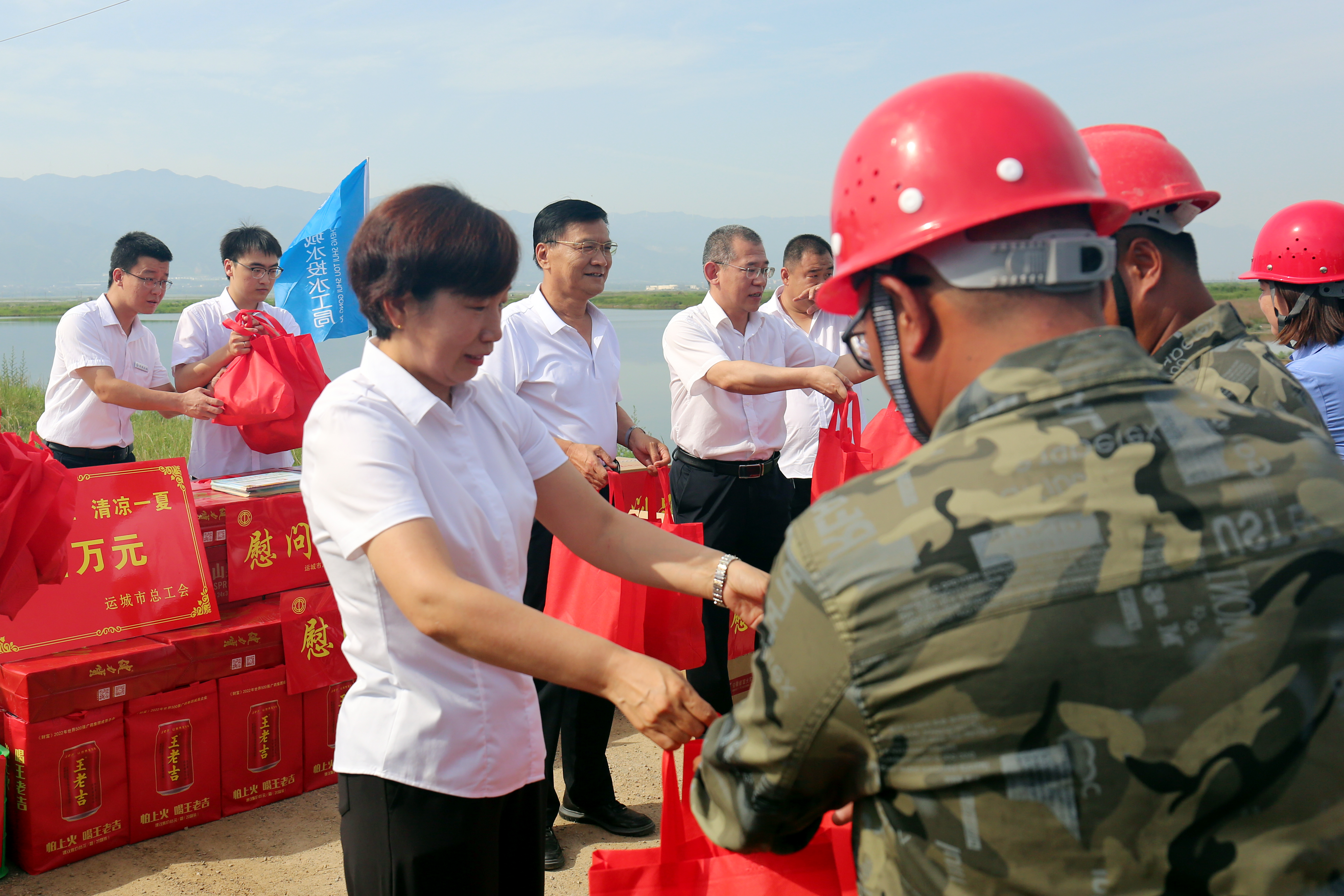 7月7日上午,市人大常委會副主任、市總工會主席潘志孝一行赴我公司鹽湖堤埝項目現(xiàn)場開展“情系職工,清涼一夏”慰問活動,為奮戰(zhàn)在一線的建設(shè)者送上清涼大禮包,送去了市委市政府和工會“娘家人”的深切關(guān)懷。