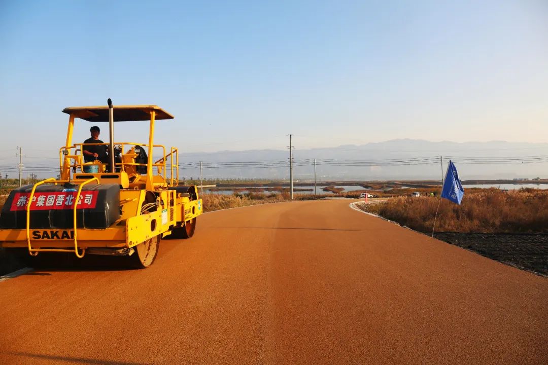 目前,已完成鹽湖堤埝二期21號連接段路面壓實;級配碎石路面結構層鋪設及彩色瀝青的鋪設;管涵建設一座;生態(tài)防護林場地平整2.3萬平方米,完成投資250萬余元。