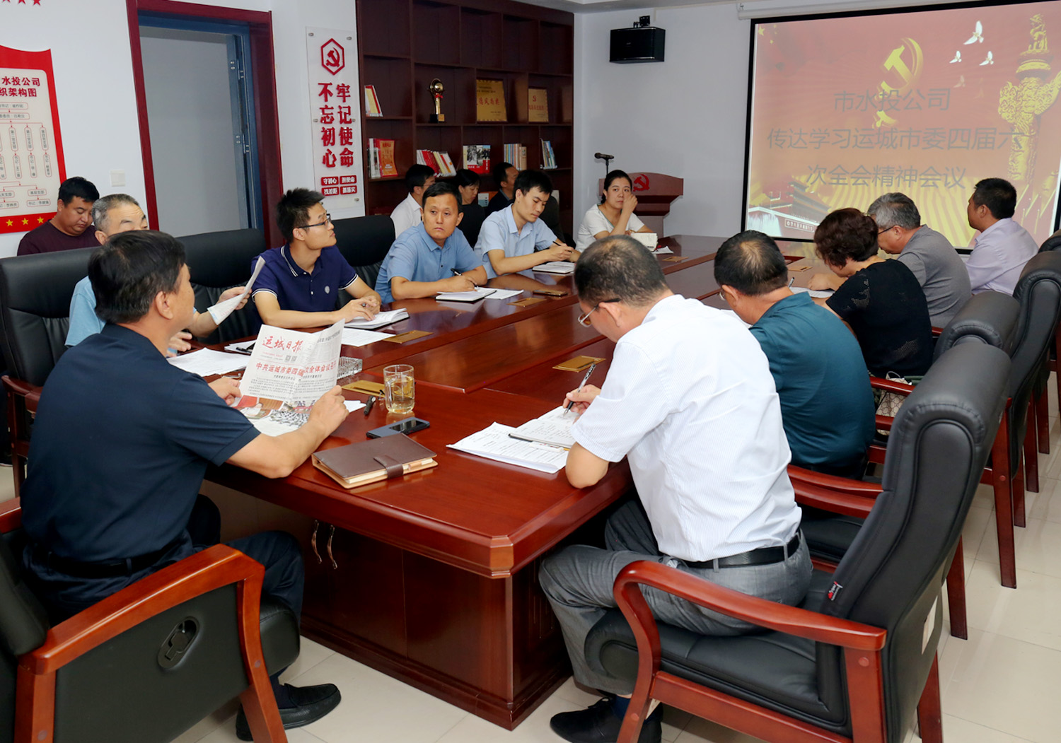 9月9日,我公司召開黨委理論中心組學習擴大會議,傳達學習了9月4日召開的市委四屆六次會議精神,公司領導班子成員、水利工程建設局、水利勘察院、水利勘測設計研究院、北趙引黃二期四家單位成員領導和公司中層干部參加了會議。