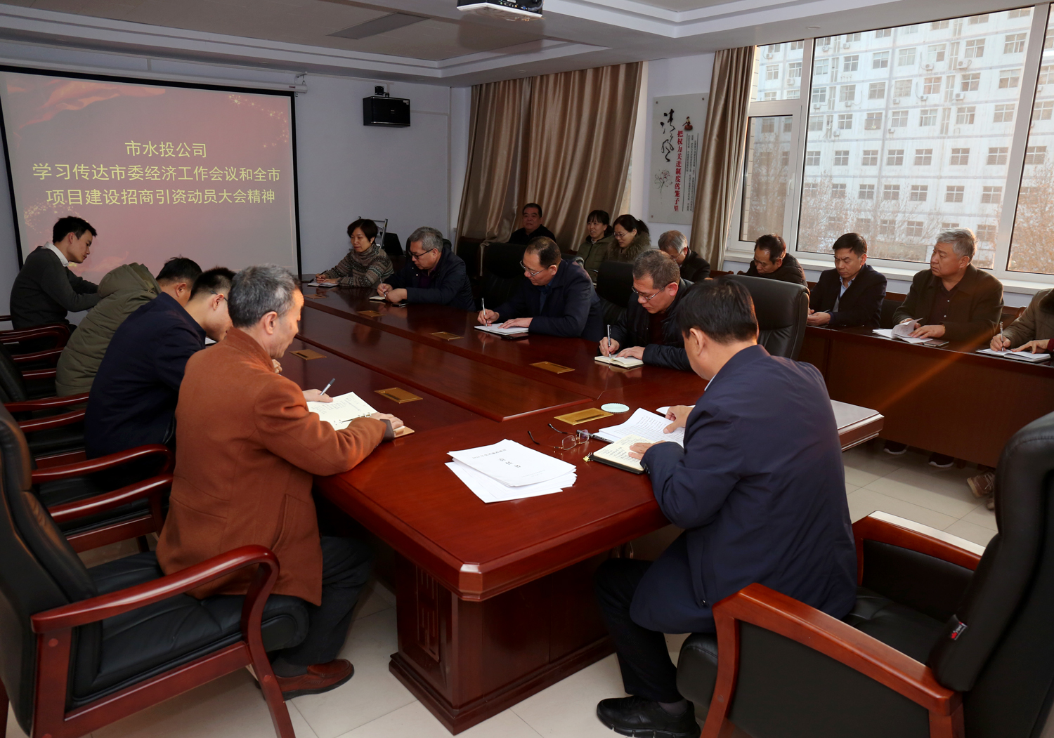 1月20日,我公司召開(kāi)學(xué)習(xí)傳達(dá)市委經(jīng)濟(jì)工作會(huì)議精神和全市項(xiàng)目建設(shè)招商引資大會(huì)精神會(huì)議。公司班子成員、下屬單位班子成員和中層干部參會(huì)。