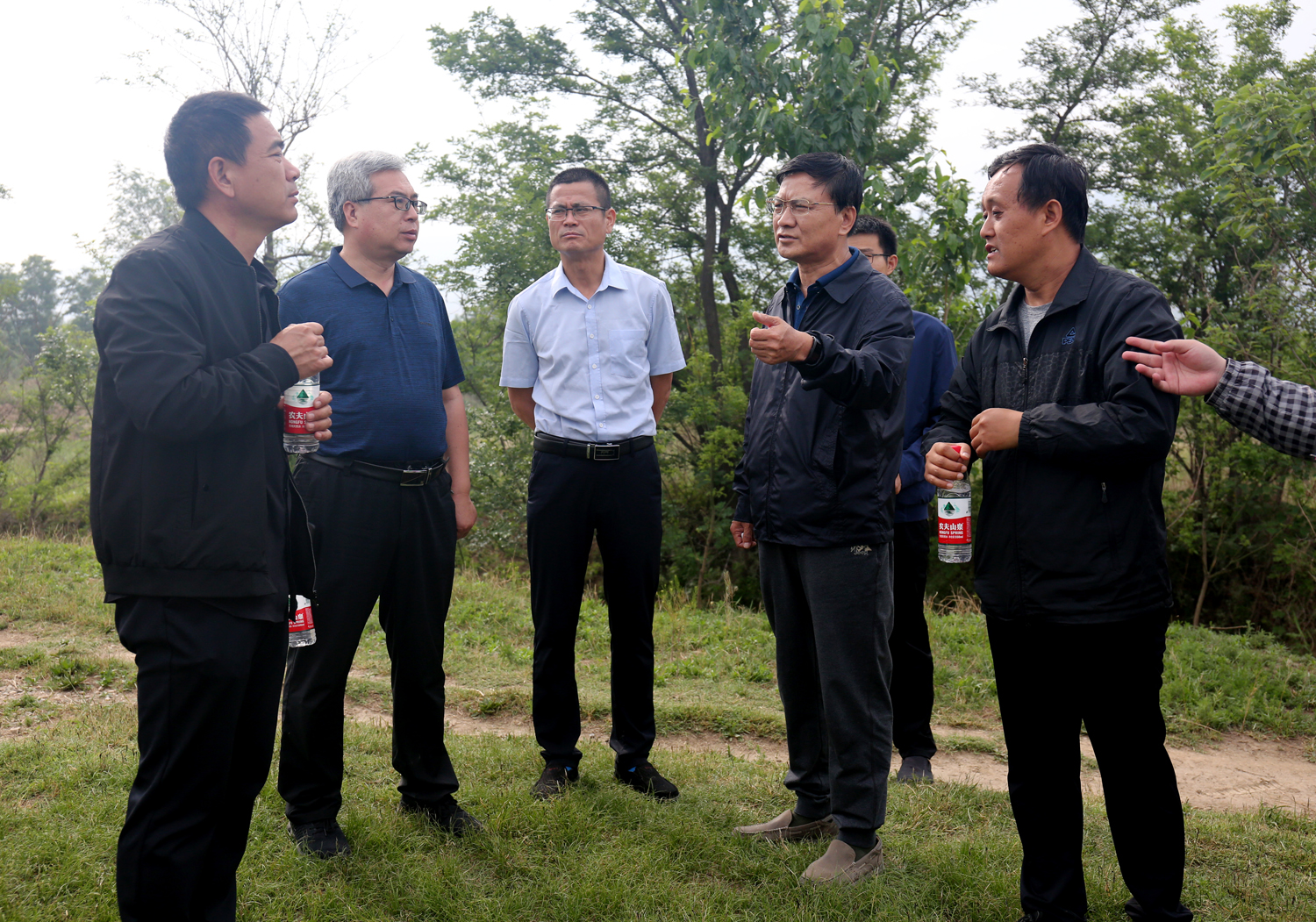 為加快推進鴨子池水生態(tài)綜合提升工程施工進度,5月20日上午,公司董事長崔作銘帶領(lǐng)公司相關(guān)人員,會同市水務局、設計單位、項目公司、項目部就環(huán)湖路工程、泵站排水壓力管線工程,步行從鴨子池泵站沿堤壩逐段實地查看,現(xiàn)場辦公,針對施工中所存在的問題,與設計單位、項目公司相關(guān)人員現(xiàn)場商議,交換思路,協(xié)商方案。