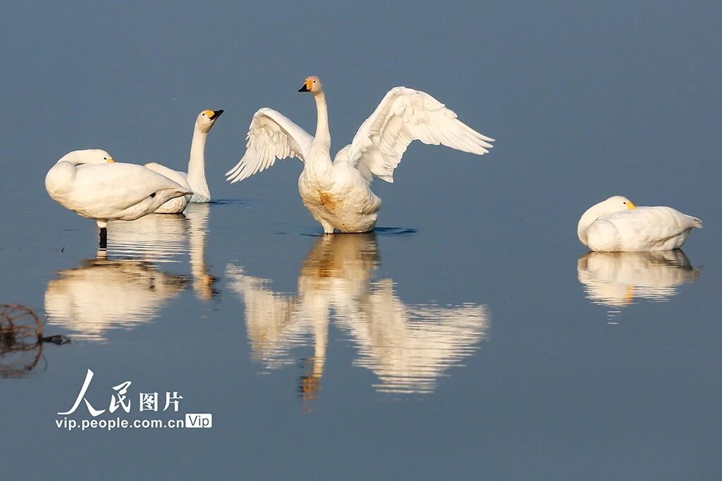 10月27日,運(yùn)城市鹽湖濕地景區(qū)迎來了首批越冬的天鵝,它們在水面上悠然嬉戲、展翅飛翔,為鹽湖增添了一道靈動(dòng)的風(fēng)景線。